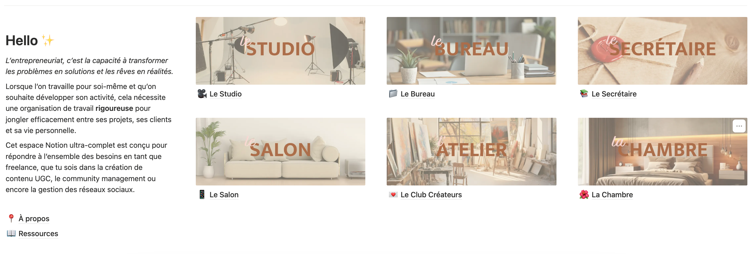 Organise ton business comme un.e pro avec un espace Notion clé en main, pensé pour les créateurs et les freelances.